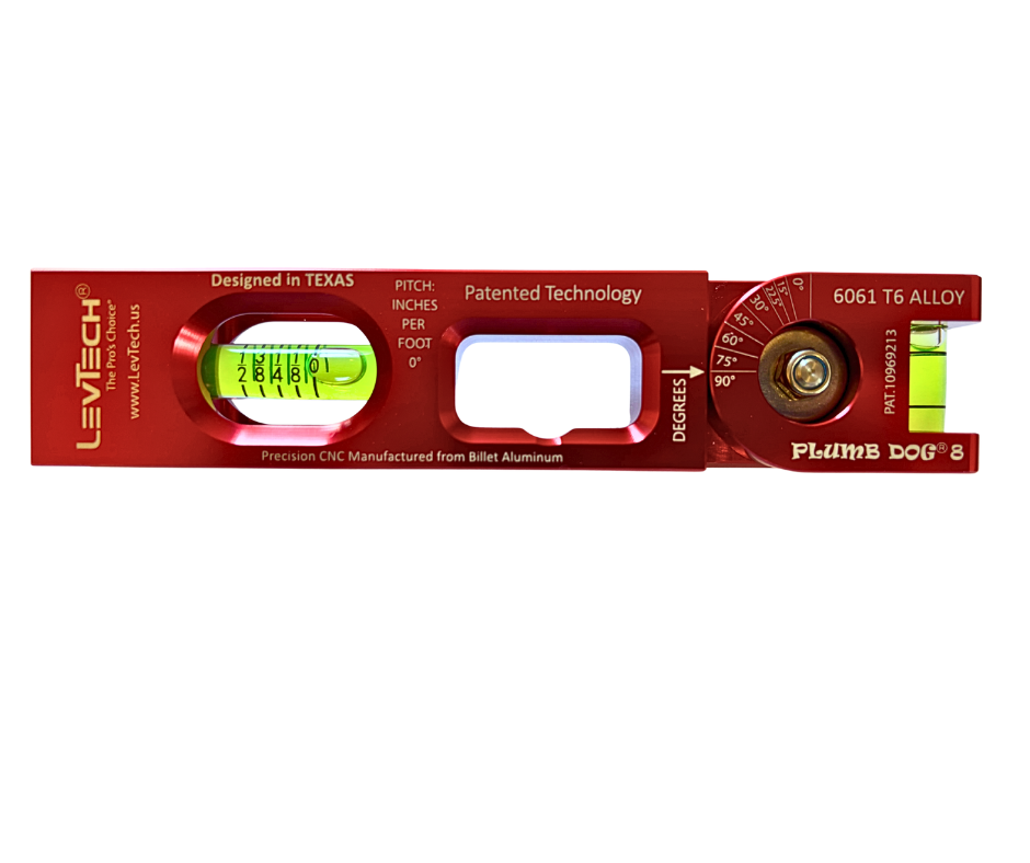 The LevTech Plumb Dog 8 Magnetic Plumbing Level is engineered for precision and durability on every jobsite. Its replaceable vial, secured by a brass screw, allows quick on-site repair if broken. Each level includes a FREE extra gradient vial and features a Ball Bearing Point System for fixed angle settings at 0°, 15°, 22.5°, 30°, 45°, 60°, 75°, and 90° with a spring-loaded ratchet effect for accuracy.
